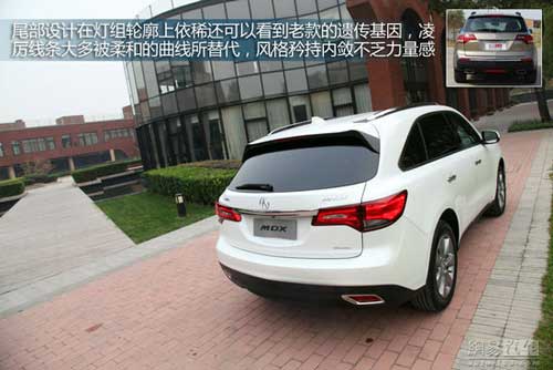 尾部設計方面,換代MDX統一風格收斂了很多鋒芒。相較現款車型,后擋風的傾角更大,C柱的開角更小,構成更舒展自然的視覺效果。線條力度新車似乎是在刻意收起刺猬的鋼刺一樣,曲線柔軟中散布著優雅和高貴,但也從不缺乏硬朗的力量感。