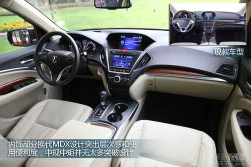 相較于外觀的改變,內飾整體風格變化并不大,在突出棱線的勾勒下,視覺效果更立體更有層次感,設計方面換代MDX主要突出功能便利性,大量的按鍵簡化成觸控方式,提高科技感的同時讓使用感受更加輕松易上手。