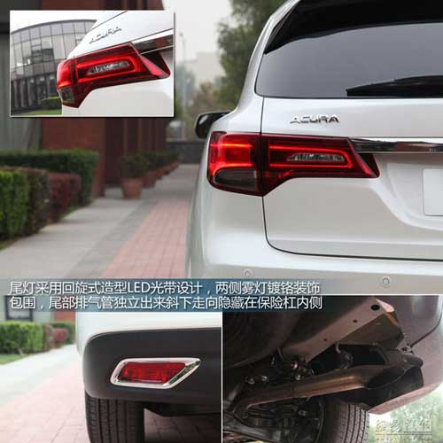 前臉最大的亮點在于全新Jewel Eye 5眼光學照射系統的加入,相較RLX的十顆復眼的夸張造型,全新MDX單排5顆更大直徑的全LED光源更兇狠更吸引眼球。外部三顆“瞳孔”為近光燈、內部兩顆為遠光照明,每顆頂部都設計有薄薄一層LED燈條(日行燈),配合鋒利的鍍鉻裝飾矜持中蘊含著攝人霸氣,不怒自威。