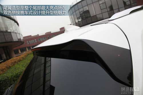 尾燈LED燈帶的部分與前燈組鍍鉻裝飾條輪廓基本一致,造型風格更規矩一些,不過科技感依舊非常強。除此以外,賽車樣式后尾翼的設計很有看點,凹凸面配合黑白雙色拼接,看似低調實則暗潮洶涌。