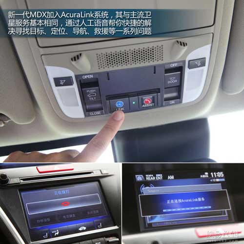 謳歌在全新一代MDX上加入了AcuraLink服務系統,它的工作方式基本上與主流系統一致,均以電話人工語音的方式幫助完成使用者需求,提供包括自動緊急救援、手動緊急救援、道路救援、車輛防盜、被盜追蹤、遠程控制、遠程診斷、活動信息通知、3D導航地圖、實時路況信息、回避區域、精準人工地圖檢索、周邊設施人工搜索等在內的多方面人性化智能信息通信服務。