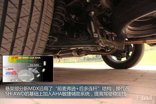 換代MDX在謳歌原有優勢項目SH-AWD四驅系統的基礎上,加入了全新的AHA敏捷輔助系統,幫助車輛在彎道中擁有更游刃有余的運動狀態。沿用的前麥弗遜配后多連桿的懸架結構完全符合城市駕駛要求。MDX并不是為糟糕路況而生的戰士,而是擁有俊朗型格的都市挑戰者。