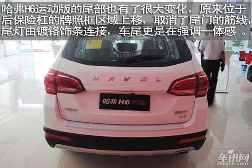 哈弗H6運動版外觀變化還是十分明顯的,不僅采用了識別度極高的大嘴式前進氣格柵,前保險杠、前大燈、輪眉、輪圈、后尾燈、后保險杠和排氣管等部位都為全新的設計,尾部削減了一些筋線,形成簡約的視覺效果。