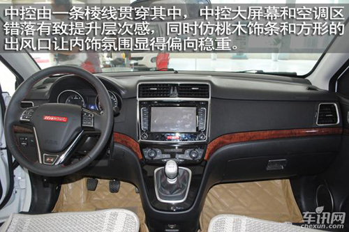 中控由一條棱線貫穿其中,中控大屏幕和空調區錯落有致提升層次感,同時仿桃木飾條和方形的出風口讓內飾氛圍顯得偏向穩重。