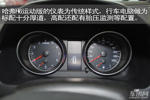 哈弗H6運動版標配的有無鑰匙進入/發動機啟動系統、雙溫區自動空調、GPS導航、中控彩色屏幕、行車電腦、藍牙電話、可電動調節/折疊/加熱的外后視鏡等配置。其中精英型、尊貴型更擁有電動天窗、定速巡航、倒車影像、真皮座椅、前排座椅加熱、自動頭燈。在配置方面,哈弗H6運動版基本與哈弗H6的其它版本持平。