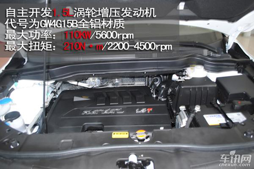 哈弗H6運動版只提供兩驅版本,動力主打1.5T發動機,最大功率為110kW(150Ps)/5600rpm,峰值扭矩可達210Nm/2200-4500rpm,匹配6擋手動變速箱。