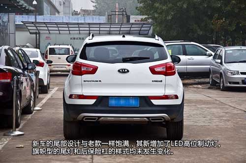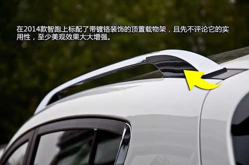 新車(chē)的尾部設(shè)計(jì)與老款一樣飽滿(mǎn),其新增加了LED高位制動(dòng)燈。旗幟型的尾燈和后保險(xiǎn)杠的樣式均未發(fā)生變化。不過(guò)有一些細(xì)節(jié)增配編輯需要強(qiáng)調(diào)一下:在2014款智跑上標(biāo)配了帶鍍鉻裝飾的頂置載物架,且先不評(píng)論它的實(shí)用性,至少美觀效果大大增強(qiáng)。另外除了入門(mén)的GL低配車(chē)型外,2014款智跑全系都標(biāo)配了鷗翼式電動(dòng)折疊外后視鏡以及轉(zhuǎn)向指示燈。