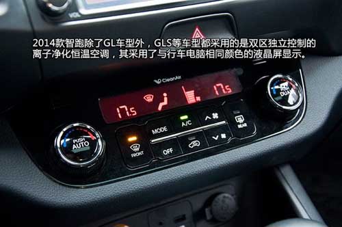 起亞2014款智跑一共有10款車(chē)型,其繼續(xù)采用2.0L和2.4L這兩款發(fā)動(dòng)機(jī)。和老款智跑相比,2014款智跑車(chē)型新增2.0L DLX及2.0L Premium Special兩款車(chē)型,全系車(chē)型的指導(dǎo)價(jià)區(qū)間為16.48-34.98萬(wàn)元。根據(jù)官方資料顯示,2014款智跑主要是針對(duì)配置進(jìn)行升級(jí)。除原有配置外,新車(chē)標(biāo)配電子防盜功能、頂置載物架及LED高位制動(dòng)燈等,而電子防眩目后視鏡、帶LED后方影像顯示屏將成為2.0L GLS AT以上車(chē)款的標(biāo)配。此外,2.0L GLS AT四驅(qū)車(chē)型還增配了前排座椅加熱、駕駛席電動(dòng)通風(fēng)加熱座椅和駕駛席電動(dòng)腰部支撐等功能。為了能大家更直觀了解到2014款智跑的變化,下面我們將用實(shí)拍圖片來(lái)為各位網(wǎng)友呈現(xiàn)。
