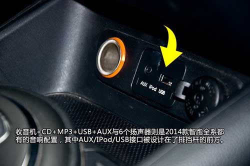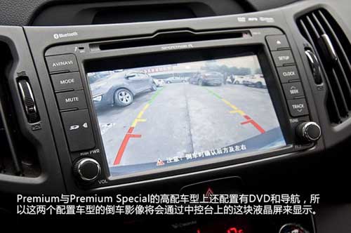 而Premium與Premium Special的高配車(chē)型上還配置有DVD和導(dǎo)航,所以這兩個(gè)配置車(chē)型的倒車(chē)影像將會(huì)通過(guò)中控臺(tái)上的這塊液晶屏來(lái)顯示。另外音響控制部分的內(nèi)容也會(huì)在液晶屏上體現(xiàn)。除了高配車(chē)型上的DVD+MP3外,收音機(jī)+CD+MP3+USB+AUX與6個(gè)揚(yáng)聲器則是2014款智跑全系都有的音響配置,其中AUX/IPod/USB接口都被設(shè)計(jì)在了排擋桿的前方。