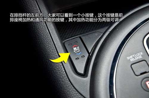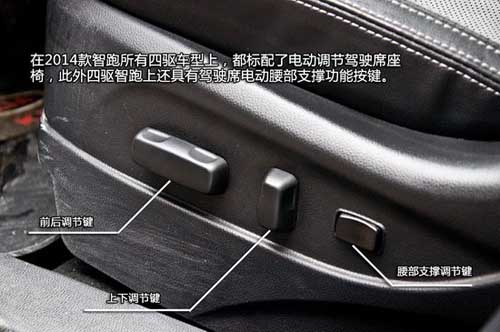 在2014款智跑所有四驅(qū)車(chē)型上,都標(biāo)配了電動(dòng)調(diào)節(jié)駕駛席座椅,此外四驅(qū)智跑上還具有駕駛席電動(dòng)腰部支撐功能按鍵。在排擋桿的左前方,大家可以看到一個(gè)小按鍵,這個(gè)按鍵是前排座椅加熱和通風(fēng)功能的按鍵,其中加熱功能分為兩級(jí)可調(diào)。只有2.0L GLS 6AT四驅(qū)、2.0L Premium Special 6AT兩驅(qū)和2.4L Premium 6AT四驅(qū)這三款車(chē)型才擁有上述配置。