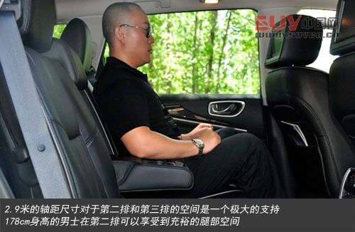 前文書(shū)提到,哦不對(duì),應(yīng)該是前文提到,2.9米的軸距尺寸對(duì)于第二排和第三排的空間是一個(gè)極大的支持。180cm身高的男士在第二排可以享受到充裕的腿部空間,而由于設(shè)計(jì)等原因頭部空間只能用中規(guī)中矩來(lái)形容。此外,前方座椅后方配有兩個(gè)獨(dú)立顯示屏,第二排乘客可充分享受影音娛樂(lè)系統(tǒng),并配有藍(lán)牙耳機(jī)以及獨(dú)立遙控器。