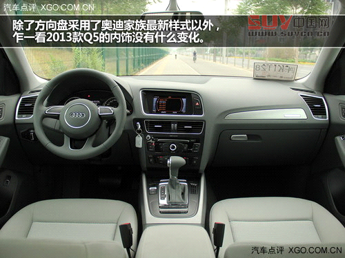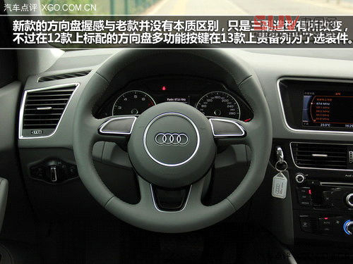 打開車門,我試圖尋找一些內(nèi)飾方面的新鮮感,不過很遺憾,除了方向盤采用了奧迪家族最新樣式以外,乍一看2013款Q5的內(nèi)飾沒有什么變化。新款的方向盤握感與老款并沒有本質(zhì)區(qū)別,只是三副造型有所改變,不過在12款上標配的方向盤多功能按鍵在13款上責(zé)備列為了選裝件。