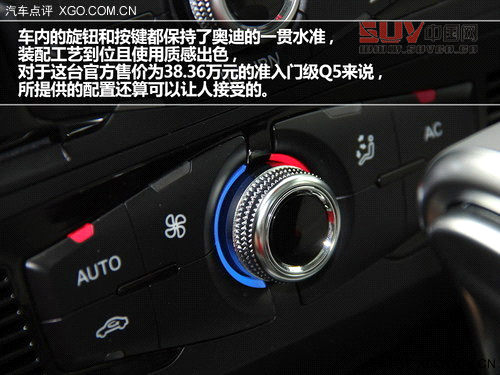 車內(nèi)的旋鈕和按鍵都保持了奧迪的一貫水準,裝配工藝到位且使用質(zhì)感出色,對于這臺官方售價為38.36萬元的準入門級Q5來說,所提供的配置還算可以讓人接受的,畢竟如果算上店內(nèi)的優(yōu)惠,我們能夠更容易實現(xiàn)“購買一臺德系豪華品牌SUV”的愿望。
