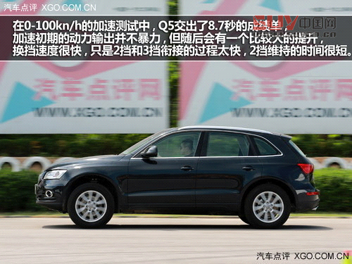 但這并不代表Q5是一個只會慢吞吞行走的SUV,在測試場上依舊很矯健。在0-100kn/h的加速測試中,Q5交出了8.7秒的成績單,加速初期的動力輸出并不暴力,但隨后會有一個比較大的提升,換擋速度很快,只是2擋和3擋銜接的過程太快,2擋維持的時間很短,加速的后半程基本上是3擋跑完,所以最終加速成績尚算出色。