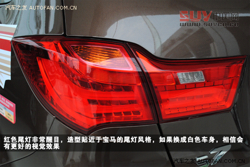 紅色尾燈非常醒目,造型貼近于寶馬的尾燈風格,如果換成白色車身,相信會有更好的視覺效果。