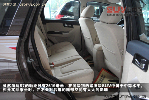 雖然海馬S7的軸距只有2619毫米,在同級別的緊湊級SUV中屬于中等水平,但是實際乘坐時,并不會對后排的腿部空間有太大的影響,加之SUV車型的坐姿高,而海馬S7又沒有四驅傳動軸來限制后排地板的平整度,整體空間表現可圈可點。