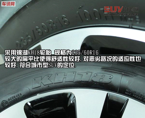 扁平比達到60%的厚胎,帶來較好的舒適性,對節油也有一定好處,更能適應惡劣路況的駕駛。同時也失去一定的操縱性,方向盤的路感也略加模糊。這種取舍也更符合城市型SUV的定位。