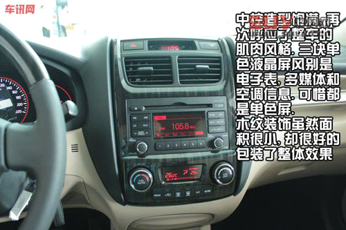 方向盤頂端部分的木紋裝飾讓小編頗感欣喜,光潔的表面,握感很棒,視覺效果很很不錯。不知道長期駕車的時候手掌出汗后,握感還能否一如既往地好。方向盤并未設置眾多復雜的按鈕,這是個小小的遺憾。
