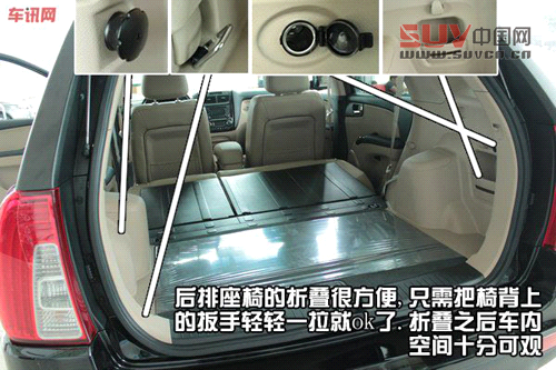 后背廂亮點頗多。首先是窗玻璃和車門分別獨立式開啟,雖然實用性可能并不大,但特殊應用情況下還是帶來很多方便。其次座椅折疊十分便利,將后排座椅靠背上的扳手輕輕一拉一推就ok了,不像某些車型雖然也能折疊,但又要拔頭枕又要拆坐墊的,十分麻煩。折疊之后十分平整,儲物大大方便了。長途旅行的時候,在車里小憩睡覺也不成問題。還有在后備箱里設計很周到,各種固定繩索的掛鉤,儲物個,12V供電。