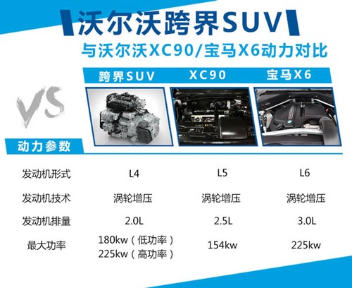 在動力方面,新車將搭載全新Drive-E四缸渦輪增壓發動機。這款2.0T引擎分為高低功率兩個版本,其中低功率版的最大功率達到180kw,而高功率版的最大功率則是225kw,相比現款XC90 2.5L引擎154kw的最大輸出功率最多提升了71kw。未來該車型上市后的主要競爭對手是寶馬X6,X6雖然采用了更高排量的3.0L發動機,但是依然無法撼動沃爾沃最新研發的高效2.0T引擎。