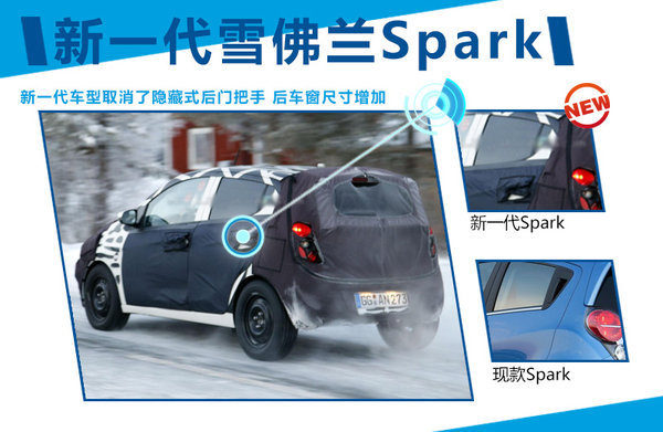 雪佛蘭Spark是通用汽車專門針對年輕人的喜好所獨身打造的產品,憑借著時尚的外觀和創意,在美國、加拿大等地區得到了不錯的反響。而該車距離上一次換代已有近5年時間,其全新一代車型有望在2015年正式退出。近日記者查閱相關資料后發現,新車將采用重新調校后的1.2L發動機,車身尺寸方面將會有所加長,同時原本后門上的隱藏式把手將被取消。