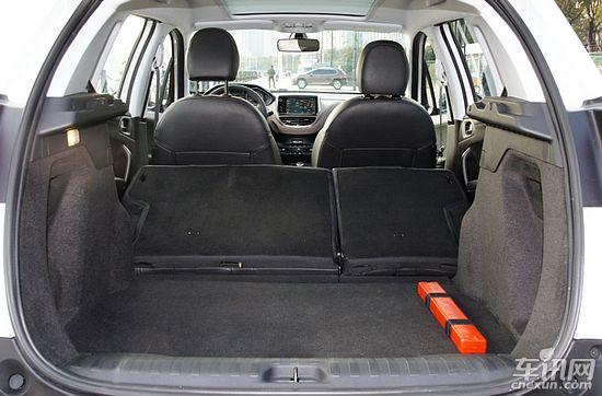 標(biāo)致2008定位于小型SUV,基于208所在的PF1平臺(tái)打造,其長(zhǎng)為4159mm,寬為1739mm,高度1656mm,軸距為2538mm。車內(nèi)為雙排5座布局,后備箱容積為360L,第二排座椅可以按照4/6比例放倒,當(dāng)?shù)诙抛畏牌胶?,車?nèi)儲(chǔ)物空間可達(dá)到1194L。