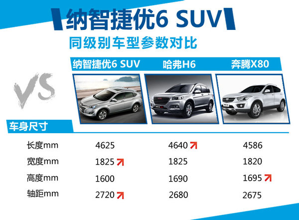 這款即將于北京車展亮相的優(yōu)6,與納智捷Sedan 5均是基于緊湊車平臺打造,該車定位為一款緊湊級跨界SUV。納智捷優(yōu)6擁有轎跑車的線條和SUV的車身高度,這與寶馬X6的整車造型有異曲同工之處。在車身尺寸方面,納智捷優(yōu)6的長寬高分別為4625·1825·1600mm,軸距達(dá)到2720mm。全面超越了同級哈弗H6、傳祺GS5等眾多競爭車型。