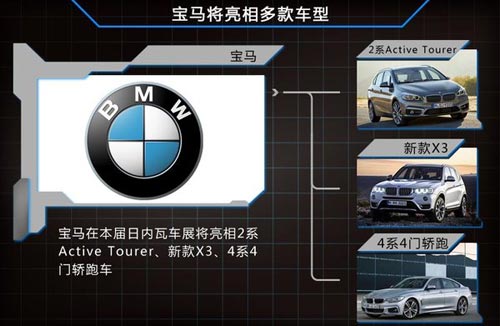 寶馬所要首發(fā)的三款車型中Active Tourer是2系家族中,繼雙門轎跑車之后的第二款產(chǎn)品。新車型將采用前輪驅(qū)動(dòng)配置,從而滿足客戶對(duì)緊湊型轎車在多樣性和功能性方面的需求。4系Gran Coupe是基于4系Coupe打造的四門轎跑,這也使得4系家族的成員數(shù)量擴(kuò)充至4名。中期改款的X3也是一大看點(diǎn),新車不僅在前臉設(shè)計(jì)上逐漸趨向于寶馬最新的家族設(shè)計(jì),且還增添了柴油與汽油版后驅(qū)車型。