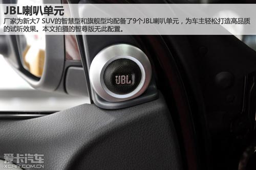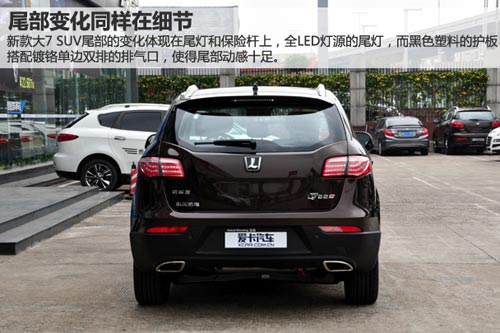從前大燈到轉向燈、從高位剎車燈到尾燈,新大7 SUV的所有燈組都采用了LED作為光源,突出科技時尚的氣派。電鍍五輻18寸輪轂的加入,暗示其具備張揚的運動沖勁。前后左右的360°全景攝像頭,確保行車安全。總體而言,盡管新大7 SUV的外觀變化體現在細節方面,但已將動感、時尚、環保、安全、科技等當下主流元素表現得恰到好處。