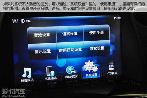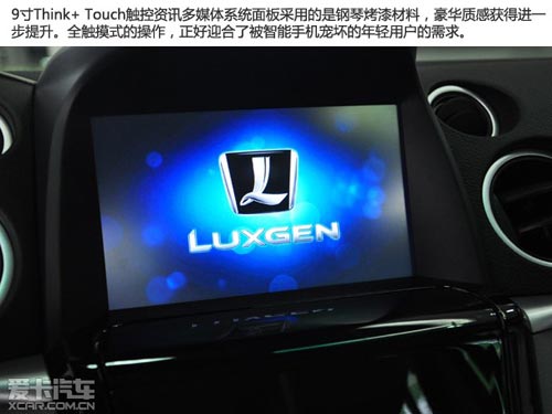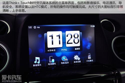 在前文已經透露了,新大7 SUV內飾最大的亮點是中控臺,將上款車型中全按鍵控制的中控臺改為科技感更強、更上檔次的全觸摸式操作,大大提升了全車的科技感。配置了9寸Think+ Touch觸控資訊媒體系統,能夠與Android 4.1版以上的hTC手機進行整合,可通過屏幕操作手機里的各項應用程式,非常討好年輕消費者的喜好。下面,我們一起來體驗下這款智能多媒體主機。