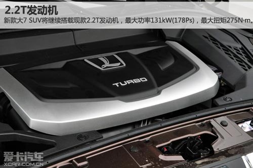 動力方面,新款大7 SUV將繼續搭載現款2.2T發動機,最大功率131kW(178Ps),最大扭矩275N·m,傳動系統匹配5速自動變速箱,提供兩驅和四驅選擇。