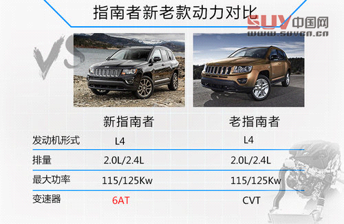 新款指南者在動力方面延續了老款的2.0升和2.4升發動機,其中2.0升發動機最大功率115kW,最大扭矩190Nm;2.4升發動機最大功率125kw,最大扭矩220N.m。但變速器由老款的CVT無級變速器更換為6AT自動變速器,這也是新款指南者最大的亮點之一。