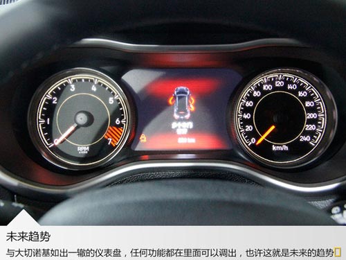 人機(jī)交互系統(tǒng)顯然是Jeep不能失去的功能,名為Uconnect的人機(jī)系統(tǒng)完全采用了液晶屏幕觸摸操作,所以導(dǎo)致了中控臺(tái)大面積的按鍵都集成里面,不過(guò)這也是為了的趨勢(shì)。同樣還能展現(xiàn)科技性的便是儀表盤(pán)的設(shè)計(jì),除了常規(guī)的轉(zhuǎn)速和時(shí)速外,任何功能都能夠出現(xiàn)在中間的液晶屏幕上。