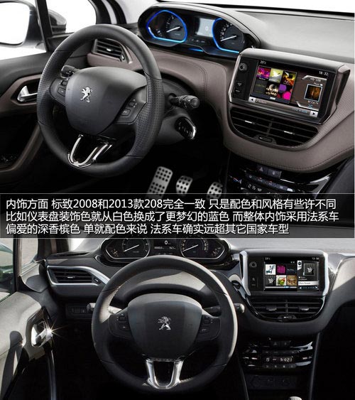 整體上,2008沿用了新款208的內飾,但在配色上再度創新,包括全新的內飾氛圍霓虹燈和深香檳色的內飾,都是法系車非常偏愛的顏色。支持導航和通話的車載信息系統還采用了觸摸屏,而且防眩光效果不錯,實用性相當高。