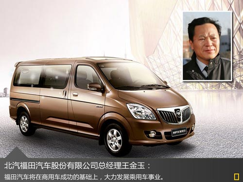 此前王金玉對于乘用車的市場規劃也曾表示:2014年底或2015年初福田將進入轎車市場,并推出一款B級車。據悉這款中高級轎車是福田醞釀9年的產品,將對標時下熱銷的邁騰、帕薩特等。此外,福田汽車還計劃在濰坊打造百萬輛級商務車生產基地,面向國內外市場,形成乘用車100萬輛、發動機130萬臺規劃產能。主要負責生產VAN(廂形客貨兩用車)和MPV。另有福田高層表示:濰坊加速豐富VAN等商務車,從而便于轎車事業的開展。