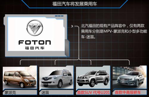 根據北汽福田所制定“2020戰略”,至2020年將在全球突破300萬銷量。其中乘用車占67萬輛,商用車105萬輛,商務車及專用車系列為128萬輛,銷售收入超過3300億元。在北汽福田的現有產品陣容中,有兩款乘用車分別是MPV-蒙派克和小型多功能車-迷笛,但兩款車型的產能顯然無法滿足2020年67萬輛的銷量目標。今年8月福田汽車宣布投資32億元建立生產基地,投產車型包括SUV、皮卡,年產能規劃24萬輛。福田首款SUV車型將在這一工廠打造,并于明年推向市場。