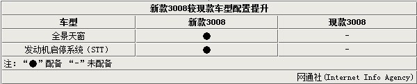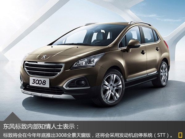 東風標致在2013年累計銷售27萬輛,同比增長達到27%。其中在去年一月份上市的國產3008,共銷售了約5.23萬輛新車。隨著2014年的到來,其也將迎來改款產品。近日東風標致內部人士向記者表示:標致將會在今年年底推出3008全景天窗版,區別于2008的全景天窗頂,此外還有其他的一些配置出現在該車上,比如將會采用發動機啟停系統(STT)。