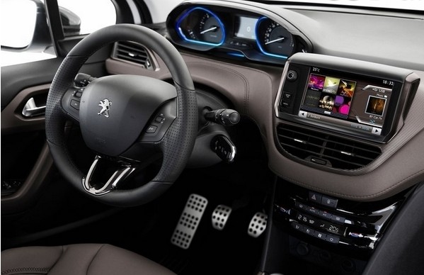 標(biāo)致2008的內(nèi)飾布局類似于同平臺(tái)的208,其儀表采用了“藍(lán)色雙筒+中央數(shù)字顯示屏”的設(shè)計(jì)。7英寸的中央液晶顯示屏的顯示效果十分出眾,實(shí)用性也很強(qiáng)。并且全新車型擁有1.3㎡的大尺寸全景天窗,部分車型車頂還設(shè)計(jì)了奇特的氛圍燈,儀表中央三個(gè)按鈕可以用來(lái)控制。