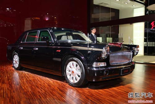 信息點(diǎn):軸距3900mm,比勞斯萊斯幻影EWB加長(zhǎng)版還長(zhǎng),整備質(zhì)量3.15噸,造型沿襲檢閱車,主打高端接待、國(guó)賓用車市場(chǎng)