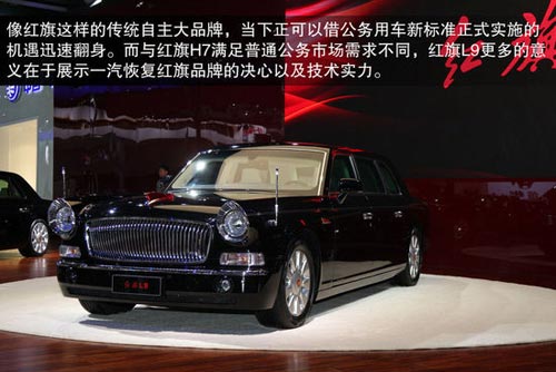 紅旗L系列主要將針對(duì)公務(wù)用車打造,其中L5將配備給正部級(jí)官員使用。對(duì)于大眾市場(chǎng)而言,紅旗將會(huì)在2014年開始通過私人定制的方式面向大眾市場(chǎng)。