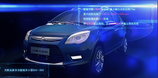 力帆X50定位為多功能小型城市SUV,其長寬高分別為4100/1722/1540mm,軸距為2550mm,達到同級別主流水平。
