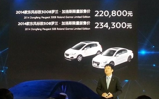 2014(第十三屆)北京國際汽車展覽會上,2014款東風標致3008 羅蘭·加洛斯限量版正式上市,這款產品搭載電動可開啟全景天窗,售價為22.08萬元。