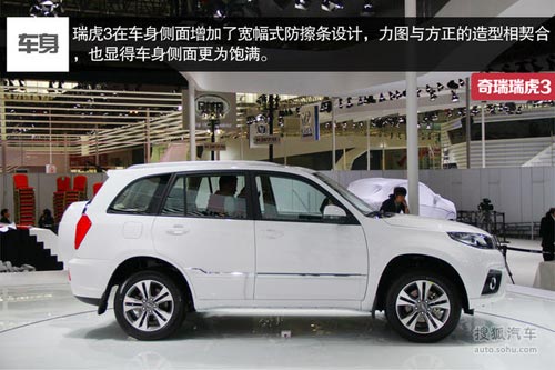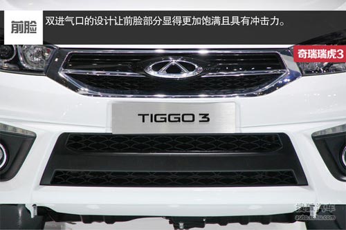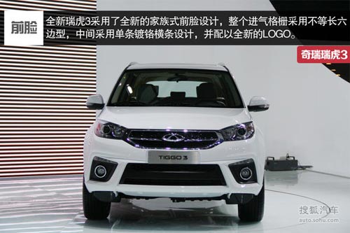 外觀方面:瑞虎3實(shí)際上是現(xiàn)款瑞虎的改款車(chē)型。相比現(xiàn)款車(chē)型,新車(chē)采用了全新的家族式前臉設(shè)計(jì),整個(gè)進(jìn)氣格柵采用不等長(zhǎng)六邊型,中間采用單條鍍鉻橫條設(shè)計(jì),配以全新的LOGO,大燈與進(jìn)氣格柵直接相連,內(nèi)設(shè)銀色鷹眉,大燈采用熏黑底,燈具邊框則采用了鍍鉻飾條點(diǎn)綴。新款瑞虎3車(chē)身尺寸長(zhǎng)寬高分別為4420mm×1760mm×1670mm,軸距為2510mm。