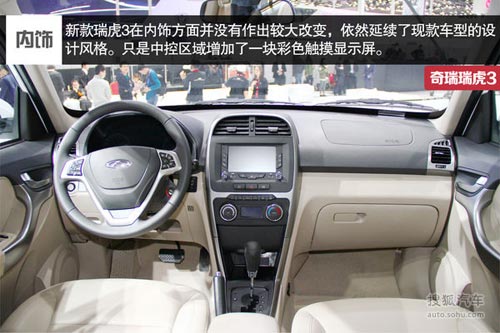 內(nèi)飾方面:全新瑞虎3與現(xiàn)款的瑞虎并沒(méi)有太多的變化,整體設(shè)計(jì)風(fēng)格依然沿用了現(xiàn)款車(chē)型,僅增加了可選的內(nèi)飾配色以及高配車(chē)型上裝配的中控區(qū)域彩色觸控屏幕。