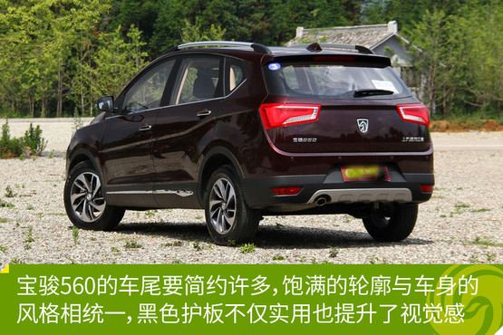 寶駿560作為上汽通用五菱旗下寶駿首款緊湊型SUV,其外觀延續寶駿家族式設計理念,寬大的盾形中網配合飛翼式前大燈,以及內部三橫幅的鍍鉻處理給人感覺十分大氣。尾部方面,寶駿560的車尾設計整體給人感覺較為規整,橫向的尾燈組與尾門腰線平齊,尾燈組內部也融入了LED光源。