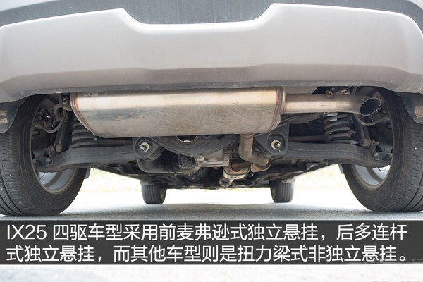 現代ix25的四驅車型后懸掛與兩驅車型有所區(qū)別,改為了成本更高且相對更為舒適的多連桿懸掛,以便更好的發(fā)揮四驅功能。