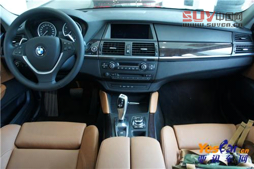 在內飾方面,雖然米色、黑色加上實木的裝飾氛圍在豪華與舒適性上更顯突出,但作為一款主打運動的的車型似乎全黑+金屬飾條的搭配更能激發駕駛者的腎上腺素。相信接觸過寶馬轎車的朋友不會對X6的駕駛環境感到陌生,三幅帶換擋撥片的多功能方向盤、右手邊的銀色旋鈕也就是寶馬“idriver”系統、類似戰斗機控制桿的換擋手柄——看來“起飛”前的一切準備都已繼續。