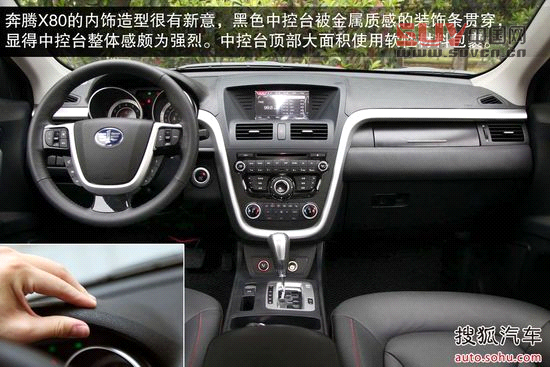 奔騰X80的內飾設計風格比較大方時尚,橫貫中控的U型仿金屬裝飾條十分醒目。另外,奔騰X80的功能分區清晰,雖然按鍵密密麻麻的,但是排列有序,上手也不難。雙炮筒的儀表是其最大亮點,不但清晰直觀,同時擁有金屬質感的銀色底邊也帶來更加清新的感受。另外,奔騰X80的儀表中間兩個圓形的行車電腦提供的信息也比較豐富,對于駕駛的幫助不小。