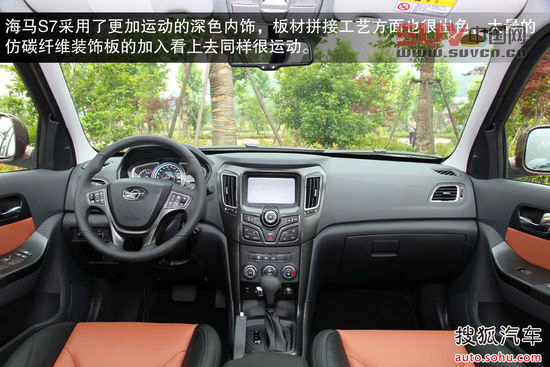 儀表的樣式也比較新穎,就是質感方面還有提升空間。值得提及的是,海馬S7的中控臺上部采用了軟性材質覆蓋,手感十分舒適。