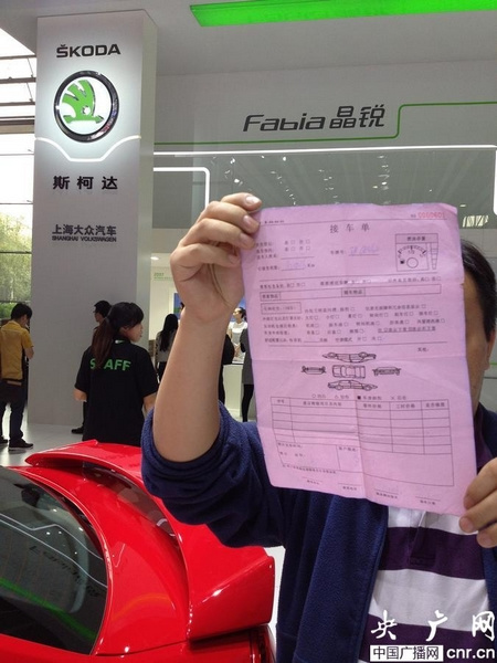 廣州車展斯柯達車主展示維修單 圖片來源央廣網